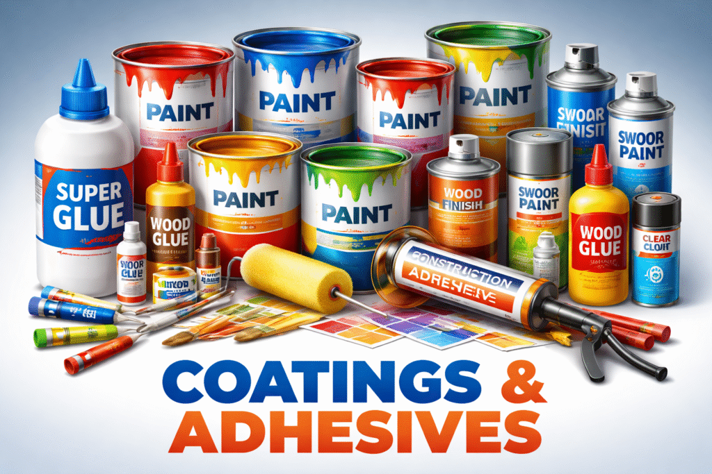 Which industries use coatings and adhesive chemicals?